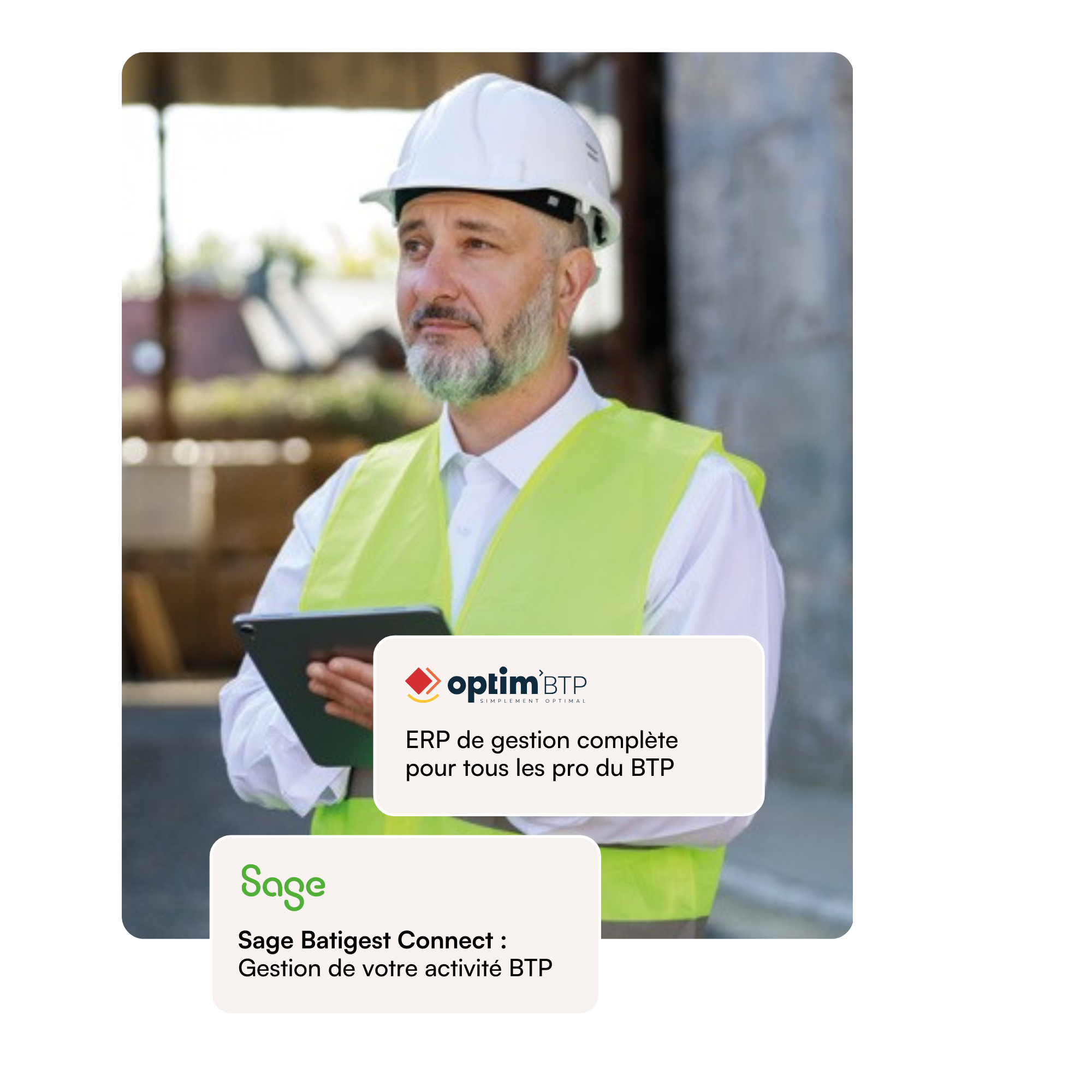 • SAGE Batigest Connect : une solution complète pour la gestion commerciale, les devis, la facturation et le suivi d’activité, idéale pour les artisans comme pour les PME du BTP.